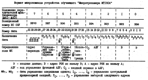 формата микрокоманды и приемов составления типовых микропрограмм для устройства МТ1804.