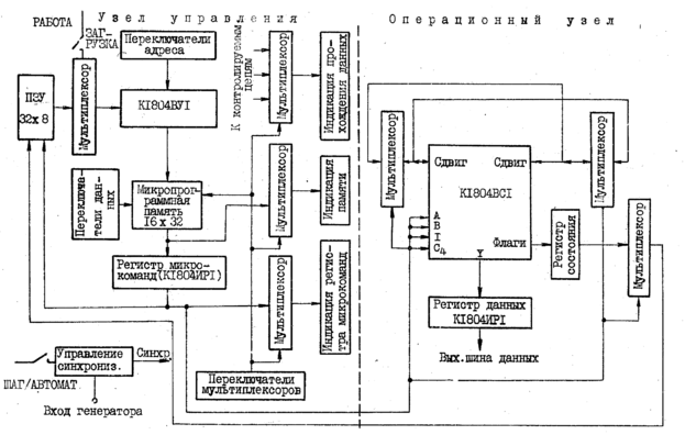 структуры лабораторного макета микропрограммируемого вычислителя – «микротренажера МТ1804», реализованного на микросхемах рассматриваемого комплекта,