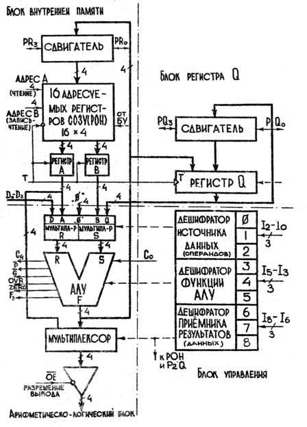 Рассмотрим архитектурные особенности процессорной секции К1804ВС1. Ее структурная схема приведена на рис. 2.