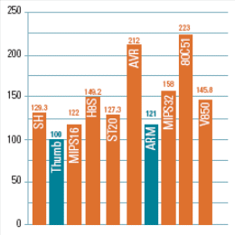 Основой, обеспечивающей технологическое лидерство компании ARM, стала архитектура разрабатываемых процессоров. Эта архитектура не имеет себе равных по соотношению производительность/потребляемая мощность (MIPS на Ватт), возможностям апгрейта, достигнутой высокой плотности кода (рисунок.1).