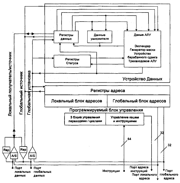 Устройство выборки-декодирования-диспетчеризации команд может направлять к функциональным модулям до 8 команд (32-разрядных) за один такт по каждому из путей обработки (А и В).