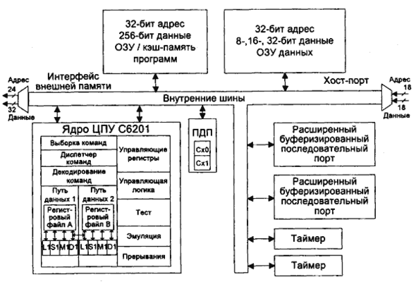 Структура микропроцессора TMS320C6201 приведена на рис. 12.