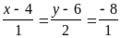Задача 4. Найти точку пересечения прямой, проходящей через точки А(4;6;8) и B(5;8;9), с плоскостью (XOY).