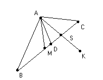 воспользуемся тем, что точка S делит отрезок АК пополам (в отношении =1). Тогда