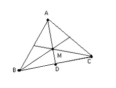 Известно, что точка пересечения медиан М делит отрезок AD в отношении