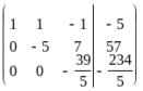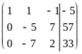 Вторая строка расширенной матрицы соответствует уравнению -5y+7z=57. Подставляя z=6, получаем -5y +42=57. Тогда y=-3. Из первого уравнения, подставляя z=6, y=-3, получаем x=4.