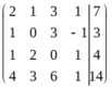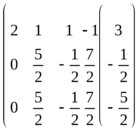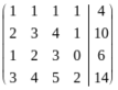 и вычтем из третьей, умножим первую строку на 2 и вычтем из четвертой, получаем: