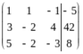 . Умножим первую строку на 3 и вычтем из второй, умножим первую строку на 5 и вычтем из третьей, получаем