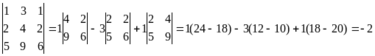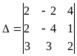 . Из второй строки вычтем первую, умноженную на 2; из третьей вычтем первую, умноженную на 3. Получаем