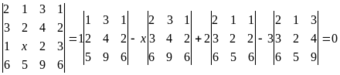 Следовательно, имеем 1(-2)-x(-3)+2(1)-3(2)=0. 3х=6. х=2.