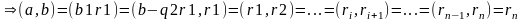 не более чем за |b| шагов последовательность rn начнет состоять из одних нулей, а последовательность конечная значит можно найти последний ненулевой остаток. Пусть