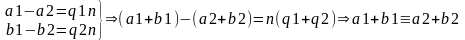 Утв: Числа a,b сравнимы тогда и тогда, когда их разность делится на n, т.е.