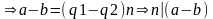 Однозначность: Пусть есть два таких числа q1,q2: a=q1b+r1; a=q2b+r2: