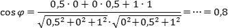 Угол φ между прямыми найдем из скалярного произведения векторов