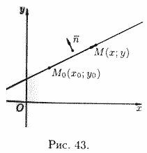 Уравнение (10.8) называется уравнением прямой, проходящей через заданную точку перпендикулярно заданному вектору.