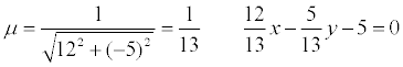 Пример. Дано общее уравнение прямой 12х – 5у – 65 = 0. Требуется написать различные типы уравнений этой прямой.