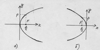 . Найти их параметр, фокусное расстояние и указать на графиках парабол место расположения фокуса.
