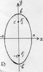 Если эллипс задан уравнением (2), то фокусы эллипса находятся так.