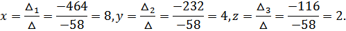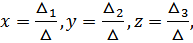 В этом случае система совместна и имеет единственное решение, которое находится по формулам: