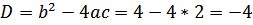 D = 12 - 4 • 1 • (-2) = 9