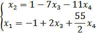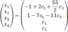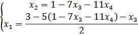 Необходимо переменные x3,x4 принять в качестве свободных переменных и через них выразить остальные переменные. При записи общего решения свободные переменные полагают равными