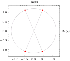 Изображение корней на комплексной плоскости имеет вид: