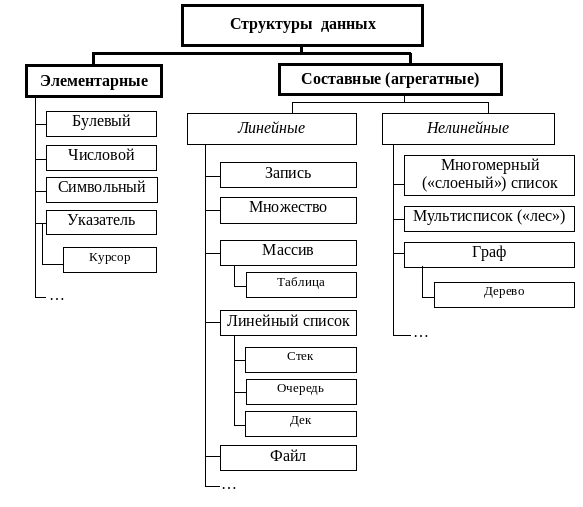 Классификация структур данных по вышеназванным признакам приведена ниже (см. Рисунок 1).
