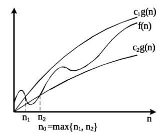 Если для функции T(n) найдутся константы c1 > 0 и c2 > 0 и такое число n0 > 0, что выполнится условие