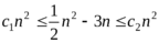 Отыскивая асимптотически точную оценку для суммы, мы можем отбрасывать члены меньшего порядка, которые при больших n становятся малыми по сравнению с основным слагаемым. Заметим также, что коэффициент при старшем члене роли не играет (он может повлиять только на выбор констант с1 и с2). Например, рассмотрим квадратичную функцию