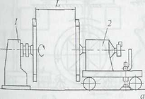Рис. 4.16. Схема (а) и общий вид (б) вращателя сварочного горизонтального двухстоечного: 1 - передняя приводная стойка; 2 - задняя поддерживающая стойка