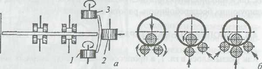 Рис. 4.27. Схемы механической правки сварных двутавровых балок (а) и цилиндрических оболочек (б)