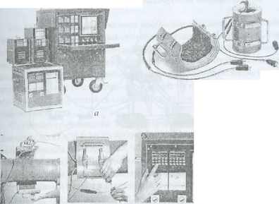 Рис. 4.29. Общий вид установки для локальной термообработки труб: а - источник питания и аппаратура для управления; б - муфты для отжига; в -последовательность операций работы на установке