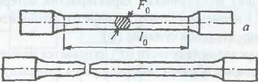 Рис. 4.48. Гагаринский образец для испытаний на растяжение: а - до испытания; б - после испытания