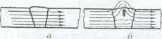 Рис. 4.44. Распределение магнитного потока по сечению доброкачественного сварного шва (а) и дефектного (б)