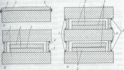Рис. 3.64. Конструкции пакетов для сварки прокаткой: