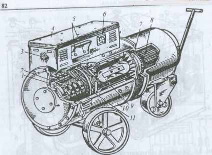 Сварочный агрегат (рис. 3.8) преобразует механическую энергию двигателя внутреннего сгорания (бензинового или дизельного)