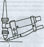 1 - вольфрамовый электрод; 2 - присадочная проволока