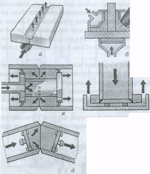 при приварке фланца; д - при сварке секционных отводов; стрелками показан поток защитного газа
