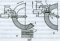 а-сварка средней части шва; б - замыкание шва; / - выходной кокиль; 2 - разделка начала шва для его замыка-ния; 3 - заходная планка; а -угол перемещения ползуна к началу замыкания; И- высота подъёма аппарата к началу замыкания шва