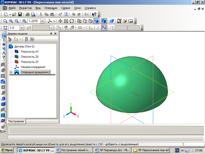 Цель работы - ознакомление студентов с основами работы графической программы Компас 3D, при построении пространственных моделей поверхностей и предметов, с получением линии пересечения двух поверхностей.