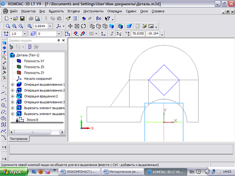 2.2.11 Моделирование горизонтального призматического отверстия (поз. 7).