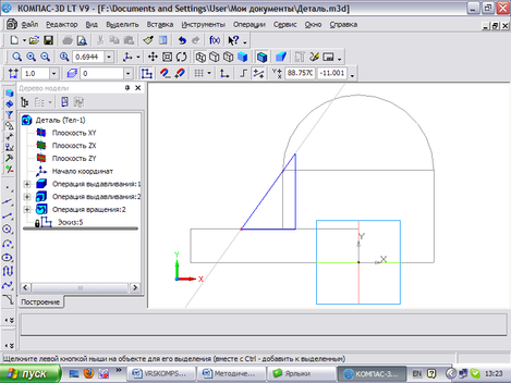 2.2.7 Построение эскиза тела-примитива 4 - призмы (ребро жесткости).