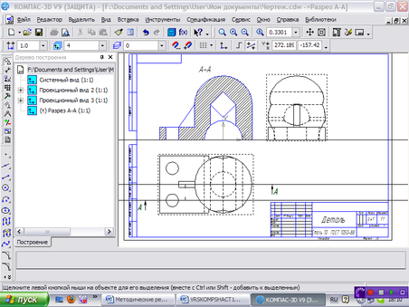 Выделяем рамкой сечение и перетаскиваем его в нужное место на поле чертежа.