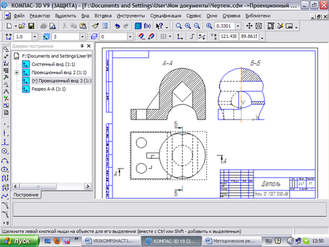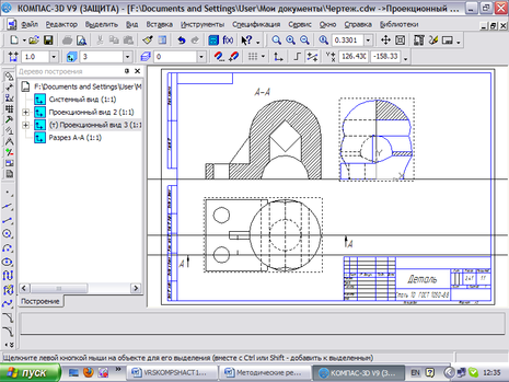 Вне поля чертежа командой Вставить→ Esc, вставляем сечение. Рис. 32. Видеоролик 18.exe
