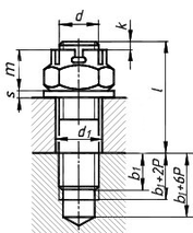 Конец шпильки длиной b1 называют ввинчиваемым резьбовым концом. Длину ввинчиваемого конца шпильки b1 выбирают, исходя из материала детали, в которую ввинчивают шпильку.