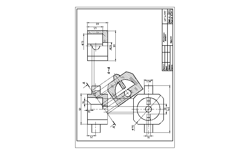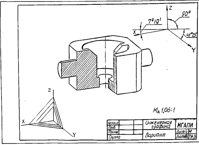 Задание выполняется на листе формата А3. Вид аксонометрического изображения (изометрия или диметрия) указан в задании листа 4.