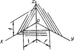 В примере, приведенном на стр. 15, заданная фигура ограничена снаружи прямым круговым цилиндром и двумя плоскостями (верхним и нижним основаниями). Внутри - углубление, ограниченное треугольной пирамидой.