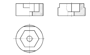 Разрез, как правило, располагают справа от вертикальной оси и вниз от горизонтальной оси симметрии.