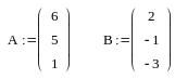 - В появившимся окне введите количество строк равное 3 и столбцов матрицы равное 1;
