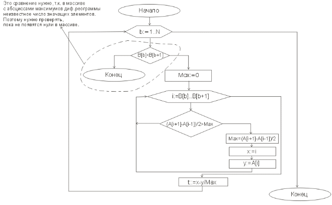 Рис. 14. Блок-схема для алгоритма нахождения точек начала изгнания крови из левого желудочка сердца.